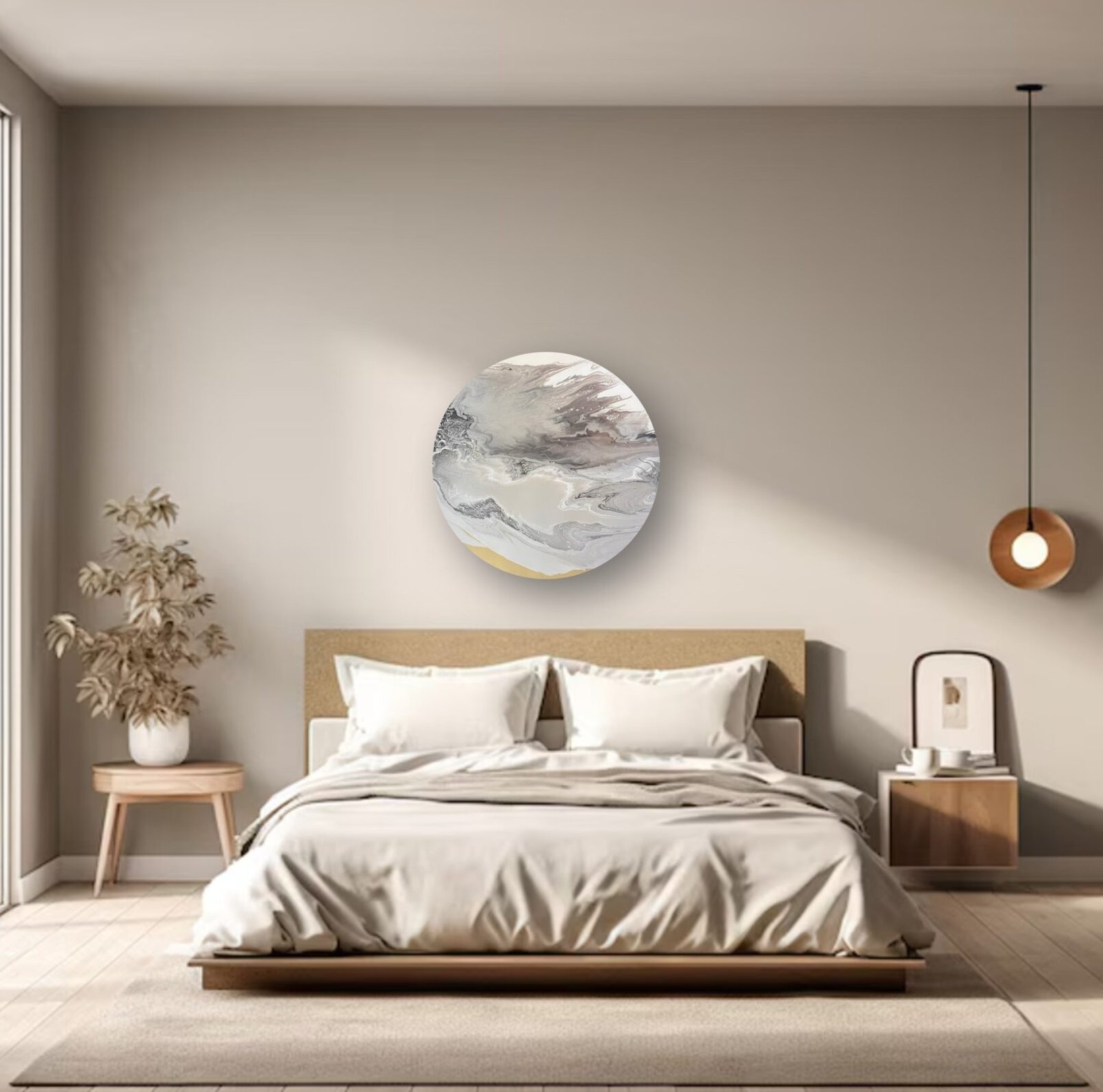 Mixed acrylic on circular aluminium panel