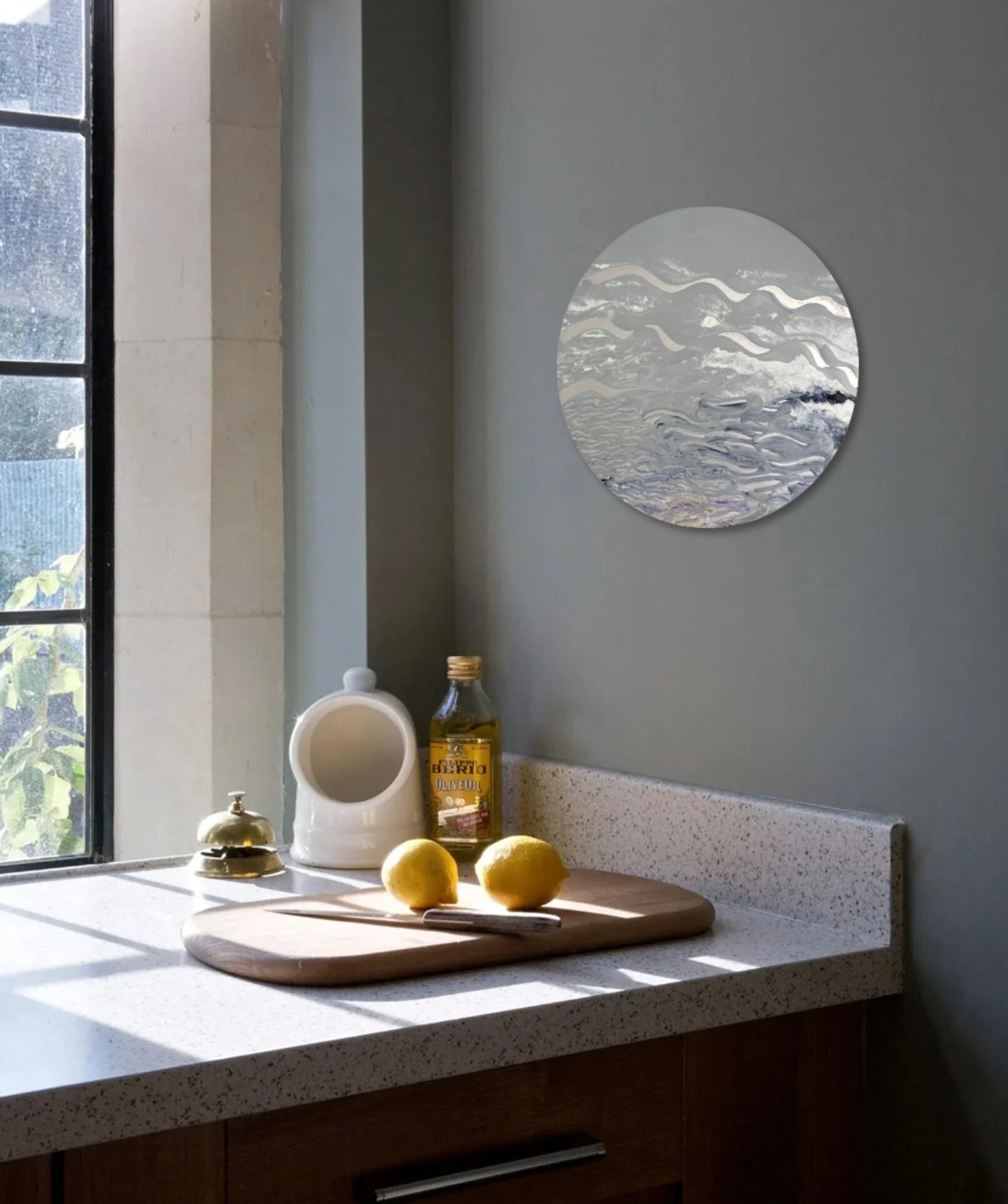 Mixed acrylic on circular aluminium panel