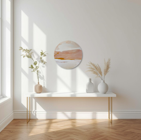 Mixed acrylic on circular aluminium panel